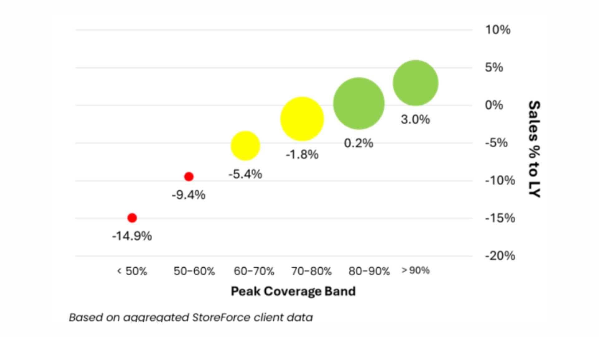 Stores operating in higher peak-coverage bands outperformed lower-coverage peers by up to 25 percent in comp sales.
